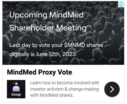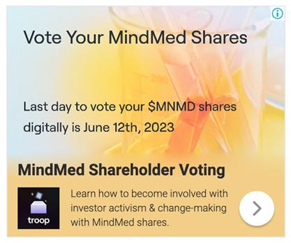 As I wrote in a recent letter to MindMed shareholders, a psychedelic revolution appears imminent and we must position MindMed to benefit. There is $130 M in the bank and our plan is to cut costs and complete a Phase III trial by 2026 using this money – analysts are projecting that MindMed is on track to squander this money on bloated costs and executive compensation by mid-2024. But we need your help, by voting on the BLUE Proxy card FOR the election of myself, Scott Freeman, Vivek Jain, Alexander Wodka, and Farzin Farzaneh as directors. Together let us bring LSD to millions with mental health disorders. It is also not too late to change your vote if you have previously voted for management’s director candidates.