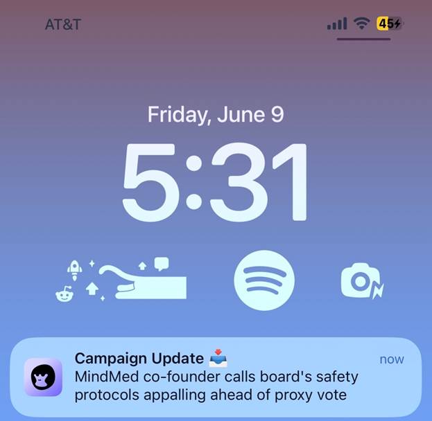 Scott Freeman is here, co-founder of Mind Medicine, advocating for the four candidates for the board up for election at Mind Medicine out of the six on the slate.