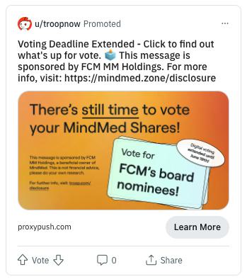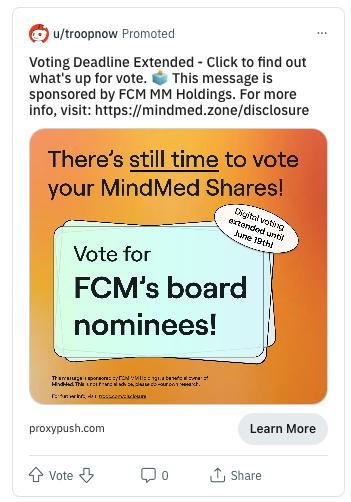 FCM MM Holdings, LLC, a Wyoming limited liability company, together with the other participants in its solicitation (collectively, “FCM”), has filed a definitive proxy statement and accompanying BLUE proxy card with the Securities and Exchange Commission (“SEC”) to be used to solicit votes for the election of its slate of highly-qualified director nominees at the 2023 annual general meeting of shareholders of Mind Medicine (MindMed) Inc., a British Columbia corporation.