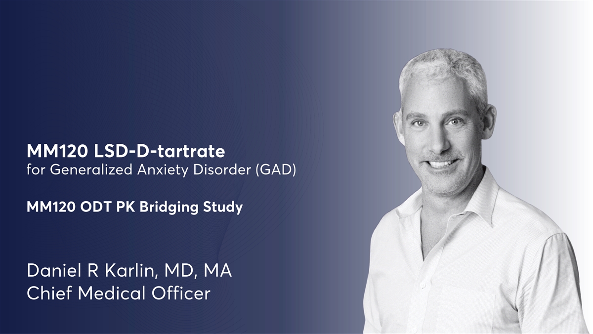 MM120 LSD-D-tartrate for Generalized Anxiety Disorder (GAD) MM120 ODT PK Bridging Study Daniel R Karlin, MD, MA Chief Medical Officer