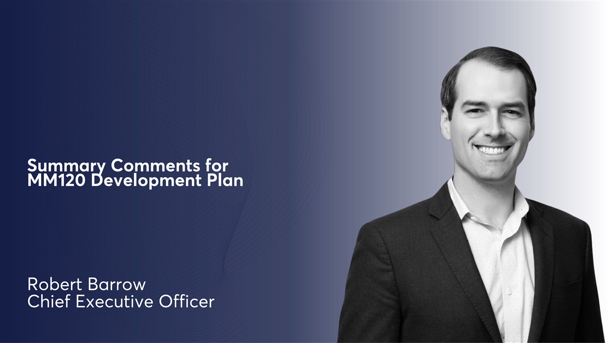 Summary Comments for MM120 Development Plan Robert Barrow Chief Executive Officer
